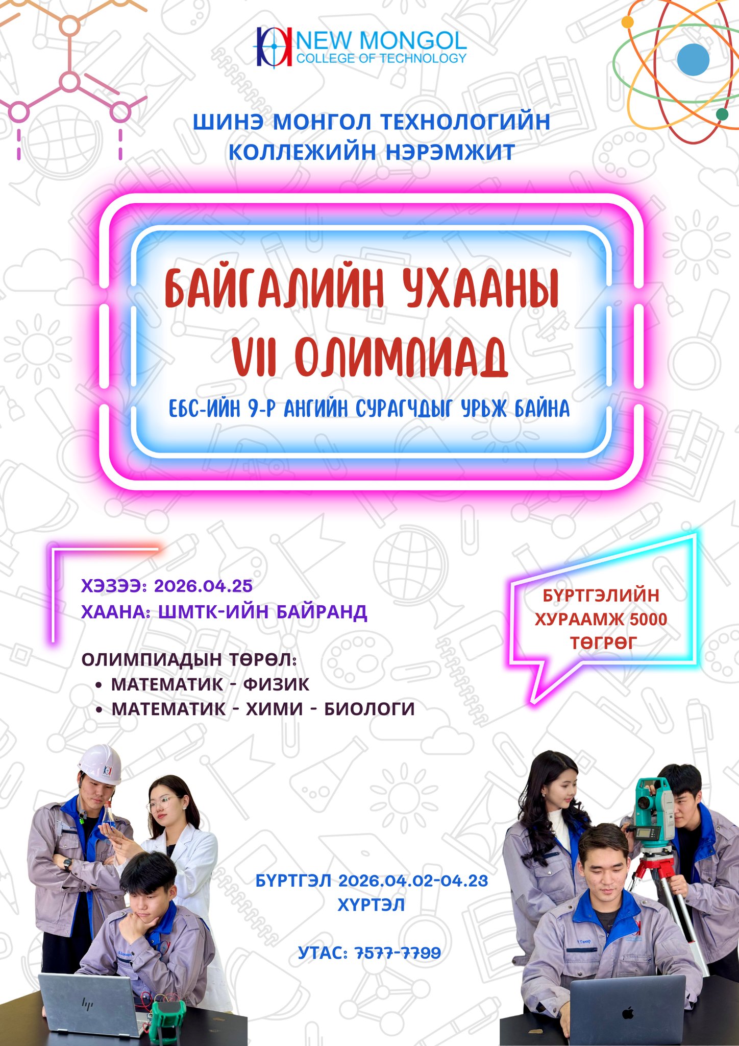 2026 оны дөрөвдүгээр сарын 25- 2026 оны дөрөвдүгээр сарын 25Шинэ Монгол Технологийн Коллеж